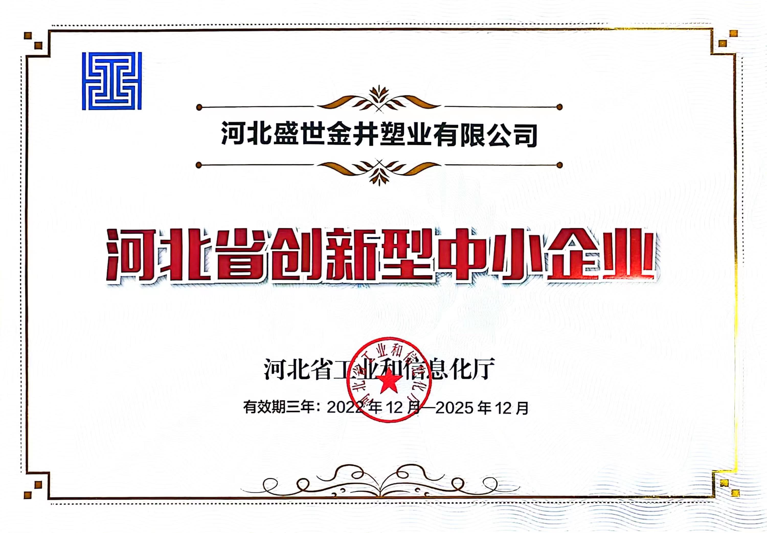 恭喜盛世金井榮獲河北省創(chuàng)新型中小企業(yè)
