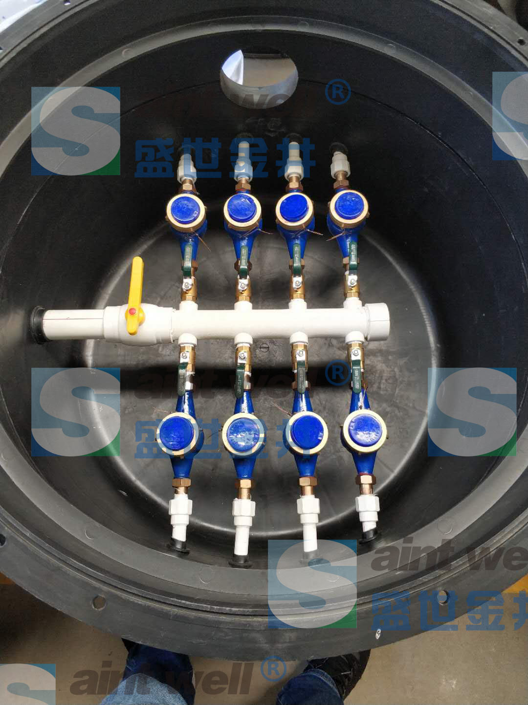 1.2米的水表閥門井底部平鋪可以滿足10塊水表的安裝,添加井室后,還可以滿足更多的水表安裝。